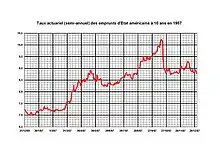 À partir de , les taux d'intérêt des emprunts d'État à long terme commencent ainsi à remonter. De 7 % en janvier, les taux des T-Notes à 10 ans passent (cf graphique ci-contre) à 9,50 % à la fin du mois de septembre. Ce mouvement de taux correspond à une baisse des cours desdits emprunts de 17 %.