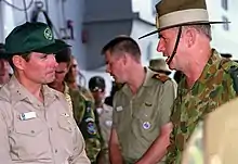 L'INTERFET[nb 6], sous commandement du major-général australien Peter Cosgrove, entre à Dili le [50]. Le , l'ensemble des troupes indonésiennes ont quitté le Timor. L'arrivée de la force d'un millier d'hommes entraîne la fuite des milices pro-indonésiennes vers la frontière avec l'Indonésie, d'où ils lancent des escarmouches occasionnelles contre les forces de l'INTERFET.