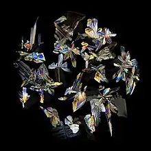 Un cristal est un solide dont les constituants (atomes, molécules ou ions) sont assemblés de manière régulière[1], par opposition au solide amorphe[1]. Par « régulier », on veut généralement dire qu'un même motif est répété à l'identique un grand nombre de fois selon un réseau régulier, la plus petite partie du réseau permettant de recomposer l'empilement étant appelée une « maille ».