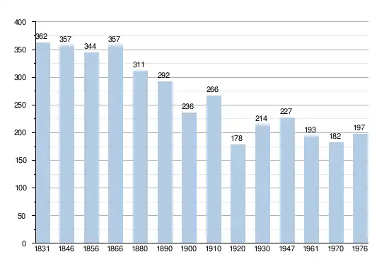 - Sources : INS, Rem. : 1831 jusqu'en 1970 = recensements, 1976 = nombre d'habitants au 31 décembre.