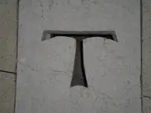 Dans la religion chrétienne, la capitale majuscule « Tau » — T grec ou bien Tav (dernière lettre de l'alphabet hébreu) — fut d'abord un signe des religieux et chevaliers antonins. Cette lettre, appelée Tau (ou Taw), est ensuite devenue le symbole franciscain par excellence, car elle a la forme d'une croix, celle du Christ.