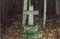À proximité de cette croix défilaient les cortèges funèbres et on y déposait souvent le cercueil d’un membre de la famille à titre d’expiation des péchés. Cette croix est l’œuvre d’un professionnel et représente la croix des morts.