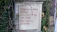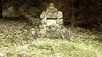- Un doute subsiste quant à l'appartenance exacte de ce calvaire. S'agit-il d'une croix faisant partie de la commune de Rombach-le-Franc ou de Lièpvre ? Lorsque nous avons visité cette croix l'emplacement de ce calvaire était situé à l'intérieur des bornes faisant partie de l'Allemand Rombach, ancien nom de Rombach-le-Franc