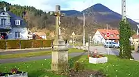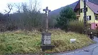 Croix élevée en 1814. Sous le socle on trouve l'inscription: Seigneur tu aimes la rose car c'est toi qui l'as créée. Béni sois tu Seigneur. La croix se trouve parallèlement à la route RN 59, près de l'arrêt du bus. Elle est en assez bon état, en dépit de la proximité de la route.
