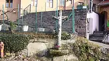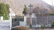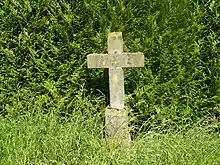 Au pied de cette croix se trouve une inscription: "En reconnaissance d'une grâce obtenue devant cette croix en 1938".