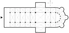 La forme de croix latine est fréquemment rencontrée dans l'architecture des églises et chapelles. L’empreinte de l’édifice au sol reprend la forme de la croix : la nef correspondant à la branche la plus longue, le transept à la traverse, le chœur à la pointe.