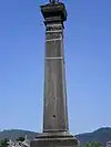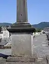 - Un pied ou un piédestal. Il forme le soubassement et repose généralement sur un socle simple ou comportant plusieurs degrés. Ce piédestal est plus ou moins ouvragé, il comporte parfois un texte (épigraphe).