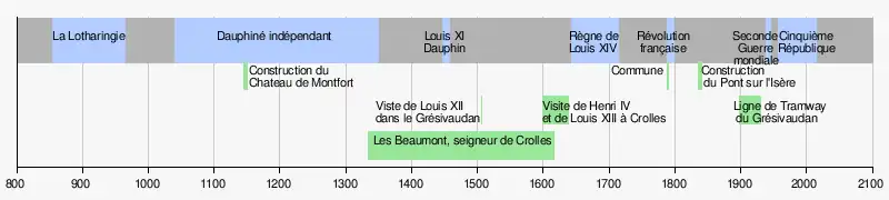 Historiquement, le noyau de l'ancien village a été construit au pied des coteaux de la Grande Chartreuse, car, dans cette partie de la vallée, l’approvisionnement en eau était possible et les matériaux de construction étaient situés à proximité. Ce qui allait donc devenir, graduellement, la petite agglomération crolloise se présentait, dès la mise en place des premières installations humaines, comme un espace favorable à l'aménagement de surfaces agricoles et un secteur tout autant favorable à la construction de voies de grandes circulations. Durant les deux derniers siècles, les zones de constructions autant résidentielles qu'industrielles s'étendirent progressivement dans la vallée au fur et à mesure de son assèchement.