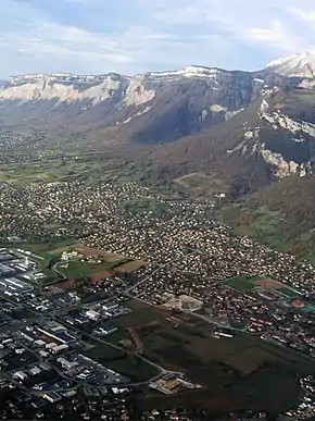 Le territoire de la commune de Crolles est situé dans la partie inférieure et centrale de la photo.