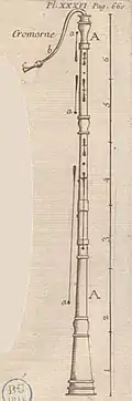 « Le Cromorne est un instrument à vent et à anche. C’est la contrebasse du hautbois [...]. On s'en servait pour jouer les basses dans les grands chœurs, où il faisait un fort bel effet ; mais comme il fatigue la poitrine, le combat a fini sans doute faute de combattants, et on se sert à présent de la contrebasse de violon. »