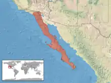 Aire de répartition de l'espèce Crotalus ruber selon l'UICN (consulté le ).