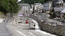 Parking du Tournaboup, pavage et endiguement d'un affluent du Bastan