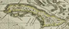 Cuba, en forme longue la république de Cuba (en espagnol : República de Cuba), est un État insulaire des Caraïbes formé de l'île de Cuba (la plus grande île des Antilles), de l'île de la Jeunesse (appelée île aux Pins jusqu'en 1978) et de 4 095 cayes et îlots[4],[5],[6]. Il est situé à l'ouest des grandes Antilles, à la confluence de la mer des Caraïbes, du golfe du Mexique et de l'océan Atlantique ; au nord-est des îles Caïmans ; au nord-nord-ouest de la Jamaïque ; à l'est du Mexique (Yucatán) ; au sud-sud-est de la péninsule de Floride ; au sud-ouest des Bahamas ; à l'ouest d'Haïti et des îles Turques-et-Caïques.