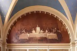 - L'église est du XIXe siècle avec son clocher comtois aux tuiles colorées[23]. L'église possède une peinture sur le mur intérieur au dessus de la porte d'entrée. Elle représente la Cène et a été réalisée par le peintre Pascal Jean Dagnan, dit Dagnan-Bouveret (1852-1929) aidé de Robert-André Bouroult, (1894-1975) et de Robert Fernier (1895-1977).