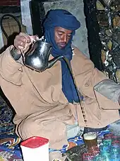 Le thé à la menthe avec le café sont des boissons chaudes les plus consommées dans tout le pays cependant le thé à la menthe est surtout un rituel observé par les populations du sud de l'Algérie où il est un élément central de la vie sociale[38] bien qu'on le retrouve dans les villes du nord. Il est préparée à base de thé gunpowder et parfumé à la menthe fraîche ou parfois sèche.
