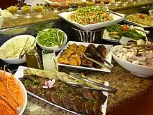 Salade ḥatzilim (caviar d'aubergines) servie aussi en Syrie, Liban (baba ganoush), Égypte ou Turquie.