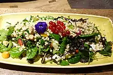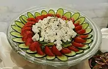 La salade israélienne est typiquement faite de tomates et concombres finement coupés et arrosés d'huile d'olive, jus de citron, sel et poivre. Des variations incluent l'addition de dés de poivrons rouges ou verts, carottes râpées, de chou haché ou de laitue, de radis tranchés, de fenouil, d'oignons de printemps et de ciboulette, de persil haché, ou d'autres herbes et épices telles que la menthe, le za'atar et le sumac[34]. Bien que popularisée par les kibboutzim, les versions de cette salade mixte ont été apportées en Israël depuis divers endroits. Par exemple, les Juifs indiens la préparent avec du gingembre haché menu et du piment vert, les Juifs d'Afrique du Nord peuvent y ajouter des zestes de citron et du piment de Cayenne et les Juifs de Boukhara hachent les légumes très finement et utilisent du vinaigre, sans huile, pour l'assaisonnement[35].
