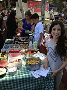 Comme plats végétaliens, il y a par exemple le sabich (avec ou sans œufs), ou comme dessert le gâteau babka[56].
