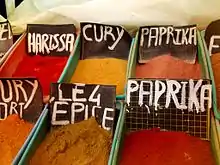 La cuisine tunisienne se caractérise par des plats épicés, riches en saveurs, et des pâtisseries sophistiquées, résultant d'un mélange de la cuisine berbéro-punique-phénicienne native avec les cuisines romaine, arabe, turque et italienne. Le condiment le plus utilisé est sans doute la harissa préparée à base de piment, d'ail, de cumin, de coriandre et de carvi.