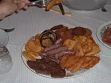 La cuisine piémontaise privilégie les antipasti: parmi ces derniers, on trouve les poivrons assaisonnés, la fondue, la salade d'oeufs et de truffes, le carpaccio de viande all'albese, le vitello tonnato, la charcuterie et de nombreux fromages comme le bruss, le bra, le bettelmatt et le castelmagno[2]. L'huile et les anchois, tous deux d'origine ligurienne, sont utilisés pour préparer des plats tels que la bagna càuda, l'un des plats les plus caractéristiques du Piémont[2].