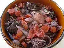 La soupe au pistou est une soupe aux légumes d'été, avec des pâtes, servie avec du pistou, un mélange d'ail, d'huile d'olive et de basilic haché[28]. Le terme pistou désigne, en provençal, les pilon du mortier qui servent à faire la préparation, et non pas le basilic, qui se dit baseli[29]. Le basilic perdant énormément de sa saveur à la cuisson, le pistou est généralement mélangé à la soupe au moment du service, ou servi séparément, pour être mélangé directement dans l'assiette par les convives.