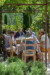 Il constate qu'ici chacun respecte un rituel ancestral : à midi pile, on arrête le travail pour un long déjeuner pantagruélique. Peter Mayle relève l’importance des repas et surtout la dimension socio-culturelle de la gastronomie française. Tout se situe au plus haut degré, soit qu’il s’agisse de la quantité ou de la qualité : « C’était un repas que jamais nous n’oublierons : plus précisément, c’était une succession de repas que nous n’oublierons jamais car cela dépassait les frontières gastronomiques de tout ce que nous avions connu aussi bien en quantité qu’en durée… Ce soir-là nous avons mangé pour l’Angleterre tout entière[11]. »