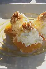 Citons aussi la crème catalane[13], brûlée ou pas, qui peut être utilisée telle quelle ou pour farcir fruits, gâteaux et pâtisseries.