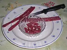 La cuisine roussillonnaise comprend toutes sortes de charcuteries, saucisses et terrines très appréciées : boutifarre, fuet (fouet), pa de fetge (pain de foie), roustes ou ventrèche (lard maigre de poitrine de porc fumé)… Le chorizo est très consommé aussi, mais ce n'est pas vraiment une spécialité roussillonnaise ni même catalane, puisqu'il est présent dans toute la péninsule ibérique.