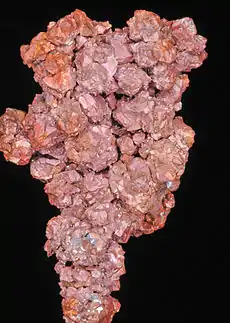 Le cuivre natif est un minéral métallique, un corps simple de formule chimique Cu de la catégorie élément natif et une espèce cristalline naturelle correspondant à l'élément cuivre, de symbole Cu.