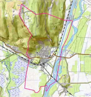 La ville est située dans l'Ain sur la rive droite du Rhône, dans une partie aménagée et canalisée après les différentes installations hydrauliques de la Compagnie nationale du Rhône. Elle est au pied du Grand Colombier, qui termine la chaîne du Jura et se trouve à quelques kilomètres des premiers contreforts des Alpes.