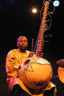 Ballaké Sissoko, musicien malien jouant de la kora en 2009.