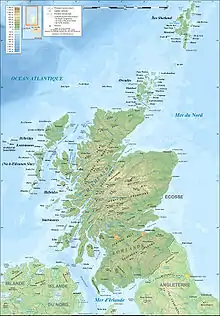 Le gaélique écossais, appelé Gàidhlig, est une langue gaélique (celtique) historiquement parlée dans les Highlands et dans les îles[17]. Il est reconnu comme langue régionale de l'Écosse en 2004 par le Royaume-Uni selon la Charte européenne des langues régionales ou minoritaires[18],[Note 2] puis comme langue officielle aux côtés de l'anglais par le parlement écossais le 21 avril 2005[19]. Il est utilisé dans la signalisation routière bilingue.