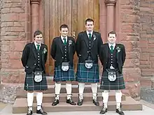 - cri de guerre : In defens (orthographe écossaise de l'anglais defence).