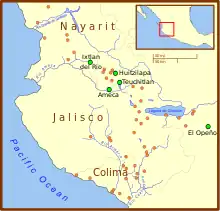 La culture des tombes à puits est un ensemble de traits culturels imbriqués dans les États mexicains de l’ouest, Jalisco, Nayarit et, dans une moindre mesure, Colima, au Sud, au cours d’une période allant, environ, de 300 av. J.-C. à 400 apr. J.-C., bien qu'il n'existe pas un large consensus sur la date de fin. En effet, presque tous les objets associés à cette culture des puits funéraires ont été découverts par des pillards et sont sans provenance, ce qui rend leur datation problématique[3]. La première tombe à puits intacte associée à cette culture ne fut découverte qu'en 1993, à Huitzilapa, près de Jalisco[4].