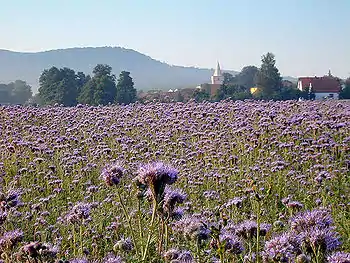 | Phacélie | 80-100 cm | 100 à 150 g / 100 m2 | Avantages : action insecticide (nématodes). Fixe les nitrates au niveau de la racine. Étouffe vite les mauvaises herbes en particulier le chiendent. Belle fleur bleue, plante mellifère. Système racinaire dense et fin, améliore la structure des terres. Aucun parasite connu.