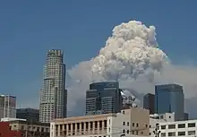 Un pyrocumulonimbus (pyroCb) est un cumulonimbus qui se forme au-dessus d'une source intense de chaleur. Selon la nouvelle version de l'Atlas international des nuages paru en mars 2017, le nom officiel du pyrocumulonimbus devient cumulonimbus flammagenitus[22]. Ils ont été découverts lors de feux de forêt[23],[24]. Ceux-ci créent des conditions d'instabilité similaires au réchauffement diurne, en plus d’ajouter des particules fines qui peuvent servir à la condensation de la vapeur d’eau en gouttelettes[25]. La source de chaleur est généralement un feu intense ou une éruption volcanique, mais il peut être simplement déclenché par la chaleur des rejets d’une cheminée industrielle si l'air est déjà très instable.
