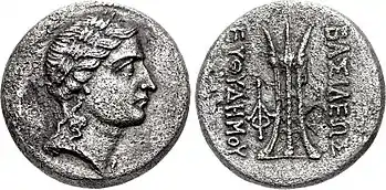 Leur provenance de Bactriane antique est une première hypothèse lancée par l'archéo-historien Flight en 1868[8]. Flight observe que le plus ancien monnayage en cupro-nickel est similaire au paktong de l'Empire du Milieu[8]. Il est rejoint par le professeur Cunningham en 1873 qui, avec sa Bactrian nickel theory, suggèrent que la matière monétaire, les pièces, est l'objet d'un commerce international de Chine à la Grèce en passant par l'Inde[9]. Les découvertes monétaires concernent des pièces cuivrées à 20 % de nickel[10]. Leurs datations sont estimées entre -180 et -170 avant notre ère, les plus récentes avec le buste de Euthydemos II sur l'avers, alors que les frappes les plus tardives portent les marques de ses jeunes frères Pantaleon et Agathocles.
