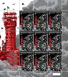- (uk) « Укрпошта вшановує «кіборгів» Донецького аеропорту: 22 січня з’явиться поштова марка «Вони вистояли! Не витримав бетон!» », sur Ukrposhta (consulté le )