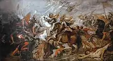 Rubens a représenté cette victoire française au travers d'une scène riche en symboles qui suggèrent la grandeur de cet évènement glorieux, et lui donnent plus d'éclat qu'il n'en eut en réalité.
