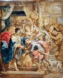 L'Apothéose d'Henri IV et la proclamation de la régence de la reine, ou encore La Mort d'Henri IV et la proclamation de la régence faisait initialement partie d'une série de trois tableaux que Rubens avait réalisés pour le Cycle de Marie de Médicis. Les deux autres, de taille identique, ornaient les salles du palais du Luxembourg[46]. On en connait deux esquisses, à la Alte Pinakothek et à l'Ermitage[47].