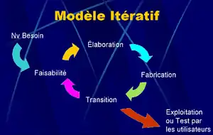 Le cycle semi-itératif a pour origine les travaux de James Martin publiés à partir de 1989 dans diverses revues Nord Américaines. Ce cycle de développement fut totalement formalisé en 1991 dans le livre RAD[4] (Développement rapide d'applications). À partir de 1994, des travaux complémentaires menés en France (RAD2)[réf. nécessaire] et en Angleterre (DSDM) apportèrent des spécialisations aux techniques basiques initiales. L’adoption par Rational Unified Process[5] d’IBM et par le processus unifié consacra l’apogée de ce cycle toujours en vigueur dans les projets importants.