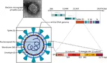 La protéine S (dites protéine spike ou protéine spicule) du SARS-CoV-2 forme des péplomères. Elle est constituée de deux sous-unités fonctionnelles : la sous-unité S1 permet la liaison du virus au récepteur de la cellule hôte et la sous-unité S2 assure la fusion de l’enveloppe virale avec la membrane cellulaire[26].