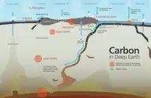 Le cycle du carbone profond est le mouvement du carbone à travers le manteau et le noyau de la Terre. Il fait partie du cycle du carbone et est intimement lié au mouvement du carbone à la surface et dans l'atmosphère de la Terre. En renvoyant le carbone dans les couches plus profondes de la Terre, il joue un rôle essentiel dans le maintien des conditions terrestres nécessaires à la vie. Sans cela, le carbone s'accumulerait dans l'atmosphère, atteignant des concentrations extrêmement élevées sur de longues périodes[1].