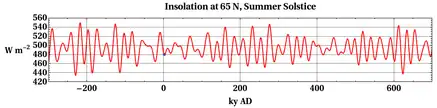 Depuis que ces variations orbitales sont établies, les scientifiques tentent de trouver un modèle capable de relier insolation à 65° et δ18O marqueur des variations passées du climat. Ce n'est pas évident à trouver car la fonte d'un inlandsis est mal cernée. Dans le passé récent (−1 Ma), la périodicité est de l'ordre de 100 000 ans avec environ 90 000 ans d'englacement et 10 000 de dégel ; mais au-delà, le forçage orbital est plutôt à une période de 41 000 ans (c'est la transition du Pléistocène moyen), correspondant à un forçage plus direct par l'obliquité. Les forages benthiques permettent de remonter jusqu'au Néogène, ce qui a permis de fonder la nouvelle échelle de temps géologique (ATNTS 2004).