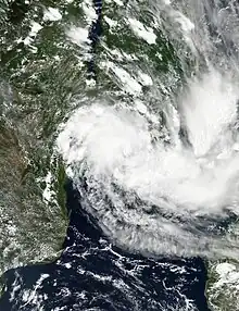 Le , le cyclone Idai a dévasté la ville portuaire mozambicaine de Beira, l’une des plus grandes villes du pays. La cité portuaire, porte d’entrée vers l’Afrique australe, aurait été « endommagée ou détruite » à 90 % et totalement coupée du reste du pays[23]. Le cyclone a provoqué une onde de tempête de 4,4 m, couplée à des pluies torrentielles, causant des inondations désastreuses[21]. Les responsables ont qualifié les vastes zones inondées « d'océan intérieur » visible de l'espace[24],[25]. Les précipitations dans la ville ont dépassé les 200 mm[21].