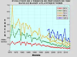 37. (en) National Hurricane Center, « Annual average official track errors for Atlantic basin tropical cyclones for the period 1989-2005, with least-squares trend lines superimposed », National Hurricane Center Forecast Verification, National Oceanic and Atmospheric Administration, (consulté le ).