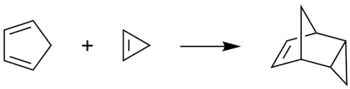 Le cyclopropène peut aussi subir une réaction de Diels-Alder avec le cyclopentadiène pour donner l'endo-tricyclo[3.2.1.02,4]oct-6-ène. Cette réaction est communément utilisée pour détecter la présence de cyclopropène après sa synthèse[7].