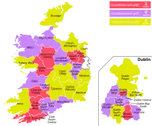 Selon la répartition des votes, il est possible que les candidats restants n'atteignent pas le quota, auquel cas le siège est attribué au dernier en lice après élimination de tous ceux ayant recueilli moins de votes cumulés[1]. Les députés élus sont appelés Teachta Dála, abrégé en TD. Ils sont en moyenne 3,9 par circonscription.