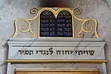 Dans la représentation habituelle des Tables de la Loi des synagogues, les cinq premiers commandements sont en général présentés de haut en bas sur la table de droite, les commandements 6 à 10 sur celle de gauche. On les symbolise souvent par leurs deux premiers mots hébreux, en observant que les commandements 6, 7 et 8 n'ont que deux mots.