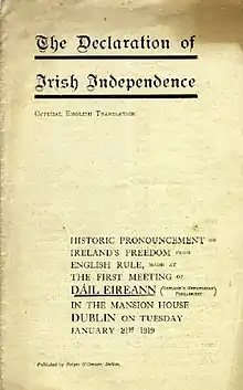 La Déclaration d'indépendance de l'Irlande (en irlandais : Forógra na Saoirse ; en anglais : Declaration of Independence) est adoptée le par le Dáil Éireann, le Parlement irlandais, lors de sa première session tenue à Dublin. Le texte de la déclaration est adopté en irlandais, en anglais et en français.